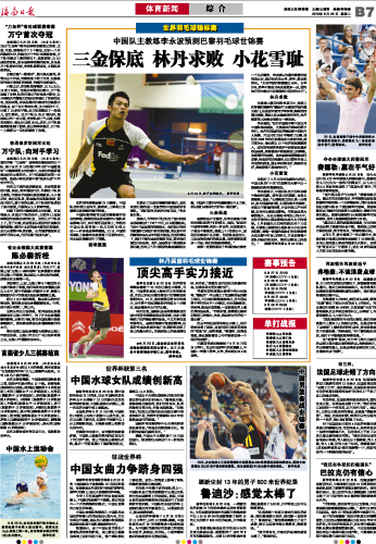 海南日报 体育新闻 综 合 015 2010-08-241 2010年08月24日 星期二