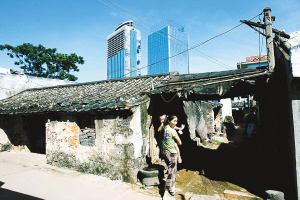 海口市玉沙村曾经是海口最大的城中村,占地526亩。2007年以来,海口市政府以“政府主导,让利于民”的“人性化拆迁”方式,使玉沙村成为海口新的地标。 大图:今年8月21日,面貌焕然一新的海口市玉沙村新城。 小图:2005年6月20日,改造前的海口市玉沙村。 本报记者 李幸璜 摄