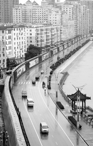 8月26日,车辆行驶在重新开通的辽宁丹东市滨江路上。 因洪水关闭的鸭绿江景区近日重新开放。在过去的一周时间里,由于连续降雨,江水上岸最深时达1.5米,水退后给岸边留下了重达百吨的淤泥。工作人员日夜奋战,目前沿江淤泥基本清理完毕。 新华社发(戚万鹏 摄)