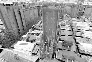 “上海中心”已完成安装地下钢结构(8月26日摄)。近日,“上海中心”主楼和裙房桩基建设顺利完工,主楼地下室钢结构也完成安装,整个工程的地下部分即将竣工。 新华社发