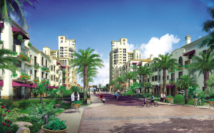 项目于2008年起,分三期开发:一期在建的是1#、2#、11#、12#及中心会所。1#、2#楼为19层的高层楼栋,配有三部高速电梯,标准层为13户通廊式板式结构,因此很好的解决了通透及采光等问题。11#、12#为小高层商住楼,一楼为6米高的商铺,2楼起为住宅,分别是8层和13层,每号楼都各配2部高速电梯。建筑风格简约浪漫、巧至有度:首创立面掏洞式超大公共“空中花园”,凭栏极目,河水绵延,椰林夺翠,云淡风清。主力墙体采用剪力墙结构,可抗7级以上地震。