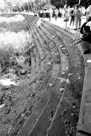 本报海口8月26日讯 (记者张杰)海南日报记者今天在海口市府城红城湖畔看到,这边垃圾满地,水中污染物随处可见。据了解,由于每天晚上红城湖周边夜宵摊点较多,加上当地居民环保意识薄弱,红城湖出现了那边政府忙着改造,这边却惨遭污染的反差。