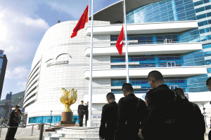 | 8月26日,香港金紫荆广场举行下半旗仪式。