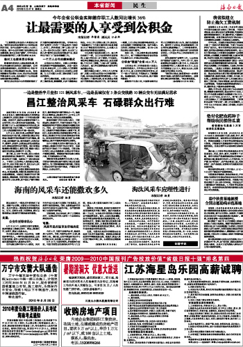 海南日报 本省新闻 民 生 004 2010-08-271 2010年08月27日 星期五