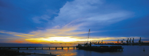 白马井—洋浦跨海大桥项目自今年2月开工以来进展顺利。记者从大桥项目部获悉,目前施工用的钢栈桥已全部铺设完工,已进入总面积2400平方米的大桥主墩钻孔平台施工。 白马井—洋浦跨海通道工程包括白马井—洋浦跨海大桥和南连接线工程,总长11公里。白马井—洋浦跨海大桥起点位于洋浦经济开发区疏港大道,是洋浦至海口一小时交通圈的重要工程,跨越白马井峡口,终点至白马井沿海路,由主桥、两侧引桥、两侧引道组成,估算投资8.73亿元,预计2012年12月份竣工。 本报记者 宋国强 摄