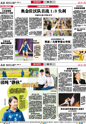 海南日报 体育新闻 综 合 008 2010-08-281 2010年08月28日 星期六