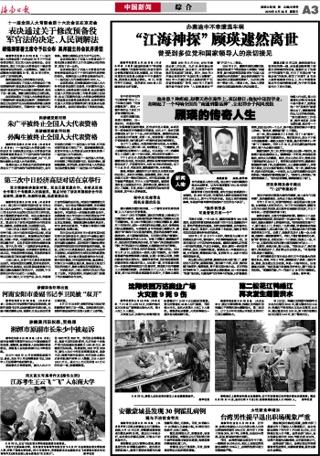 海南日报 中国新闻 综 合 003 2010-08-291 2010年08月29日 星期日