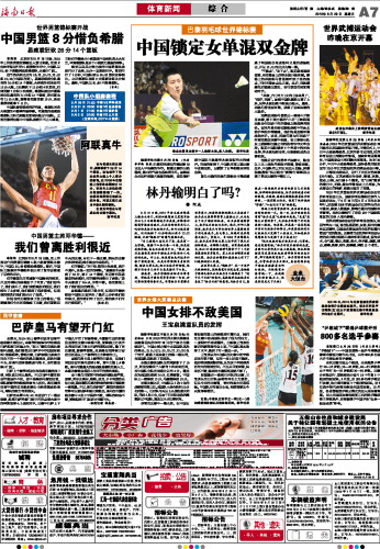 海南日报 体育新闻 综 合 007 2010-08-291 2010年08月29日 星期日
