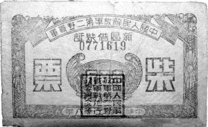 记者通过查阅资料了解到,类似军队用的“柴票”,2007年曾发现一张中国人民解放军第二野战军使用的“柴票”,只不过那是一张横票,长8.6厘米、宽5.4厘米,两色印刷。由二野一位老战士从战争年代保留至今。