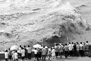 8月27日,正值农历七月十八,钱塘江涌来今年第一波大潮。 新华社发