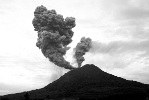 火山灰升到空中2000米 8月30日,在印度尼西亚北苏门答腊省卡罗区,锡纳朋火山喷发出火山灰。 当日清晨,印尼锡纳朋火山再度爆发,喷势超过前一天。喷出的火山灰上升到距离火山口2000米的空中。 新华社/法新