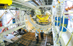 8月30日,直径达12米,刀头加盾身达1600吨的大型盾构机已开始进行天津站和天津西站地下直径线工程的掘进施工作业。据介绍,作为连接天津重要交通枢纽———天津站和天津西站的首条铁路地下直径线隧道工程建成后,将连通津秦客运线与京沪高速铁路,按照设计时速,乘火车从天津站至天津西站地下单程不到4分钟。 新华社发
