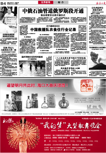 海南日报 世界新闻 012 2010-08-311 2010年08月31日 星期二
