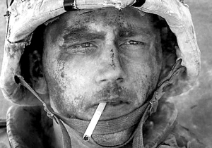 美国海军陆战队第一师第八团士兵兰斯下士,吸香烟照片。被称为“万宝路男人”。这张照片被当做美国伊拉克战争的标志性照片。