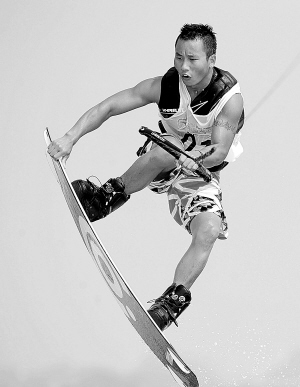 | 8月31日,北京选手舒振益在2010年中国水上运动会男子尾波比赛中做旋转动作。 新华社发 |