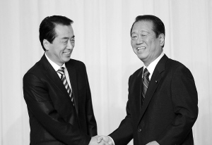 日本 9月1日,在日本首都东京,日本首相、执政的民主党代表菅直人(左)和民主党前干事长小泽一郎举行联合记者会,阐述各自政策主张。民主党定于9月14日举行代表选举。菅直人和小泽一郎将作为党代表候选人进行角逐。新选出的民主党代表将成为日本首相。 新华社记者 季春鹏 摄