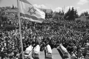 | 9月1日,哀悼者参加因哈马斯袭击而身亡的四名以色列人的葬礼。 新华社/法新 |