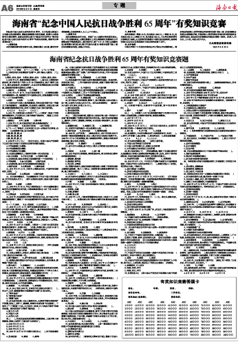 海南省“纪念中国人民抗日战争胜利65周年”有奖知识竟赛