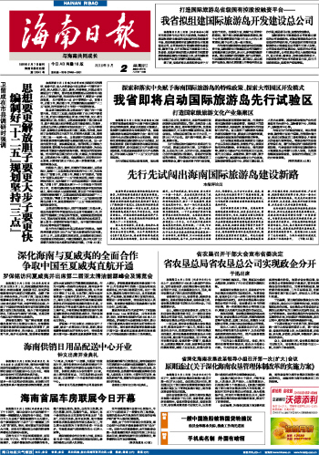 海南日报报业集团旗下媒体: 海南日报 | 南国都市报 | 南海网 | 南岛晚报 | 证券导报 加入收藏 | 设为首页