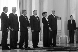 9月3日,在罗马尼亚首都布加勒斯特,6名新任部长在总统府参加宣誓就职仪式,政府改组宣告完成。 新华社发