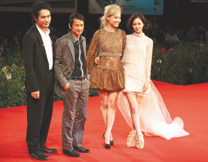| 陈英雄(左二)带演员走红毯 新华社发 |