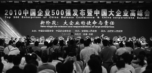 9月4日,2010中国企业500强在安徽省合肥市发布,中石化以逾1.39万亿元的营业收入蝉联榜首,国家电网公司和中石油分别以逾1.26万亿元和逾1.21万亿元的营业收入紧随其后。中国移动、工行、建行、人保、中国铁建、中国中铁、农行分列第四位至第十位。 新华社发