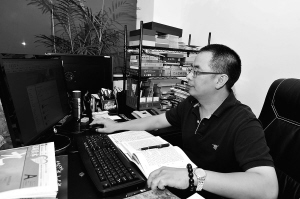 | “老亨”在办公室和网友互动。 |