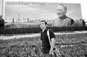 | 呙中校在深南大道邓小平画像前。 |