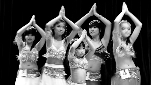 9月4日,参加少儿组团体比赛的甜心队在比赛中。当日,第六届台湾肚皮舞公开赛在台北举行。 新华社发