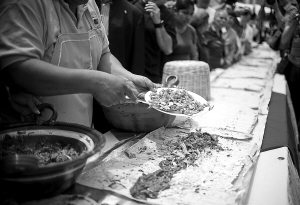 9月3日,在墨西哥首都墨西哥城的加里波第广场,一名厨师制作一份长达40.9米的墨西哥传统食品———塔科,试图打破吉尼斯世界纪录。 塔科是墨西哥人尤其是中部地区居民的主要食品,食用时将玉米面饼卷上肉和蔬菜,伴以辣椒酱、洋葱丁和柠檬汁等佐料。 新华社/法新