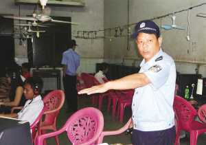 | 许用开同志生前在辖区网吧检查消防工作。 本报记者 李英挺 翻拍 |