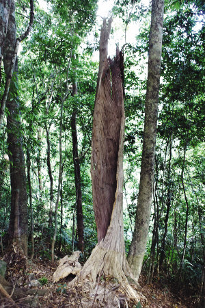 这片雨林是造物主的杰作。她偏安一隅,林密路滑,名声远远大于人们对它的认识和了解。其实,和岛内其他雨林相比,这片雨林的魅力更在于她的姿质伟岸、气度非凡。而令我至今仍难以释怀的,是她那美丽和谐“盛宴”背后的“刀光剑影”,是她无处不在的生命暗示和对人们心灵感应能力的测试。