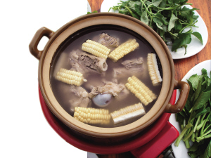 定安文明东路有家远近闻名的“定安野菜骨汤店”,常常食客盈门。老板陈朝江说,“定安黑猪骨头汤最大的特色就是清淡、养生。这道美食并没有特别复杂的工序,也没有祖传的秘方,最大限度上保持清新可口的原汁原味,食客无不闻香而至。”
