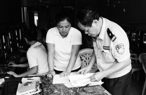| 许用开生前在辖区网吧检查消防工作。 本报记者 李英挺 翻拍 |