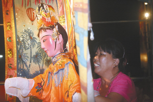 上图:大致坡镇公仔戏团演员在展演现场表演节目。 本报记者 陈德雄 摄