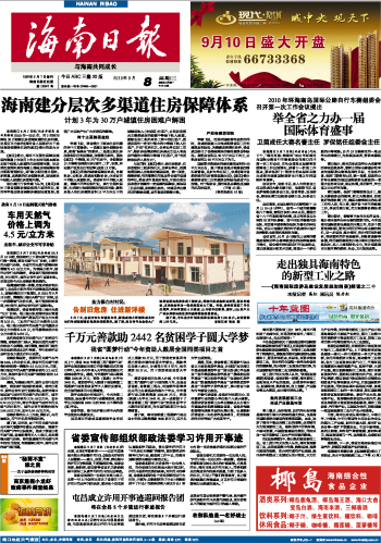 海南日报 头版 001 2010-09-081 2010年09月08日 星期三