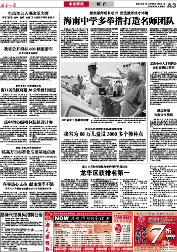 海南日报 本省新闻 003 2010-09-081 2010年09月08日 星期三