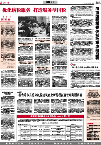 海南日报 国税专刊 005 2010-09-081 2010年09月08日 星期三