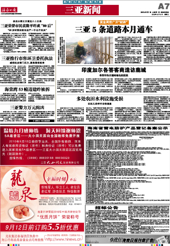 海南日报 三亚新闻 007 2010-09-081 2010年09月08日 星期三