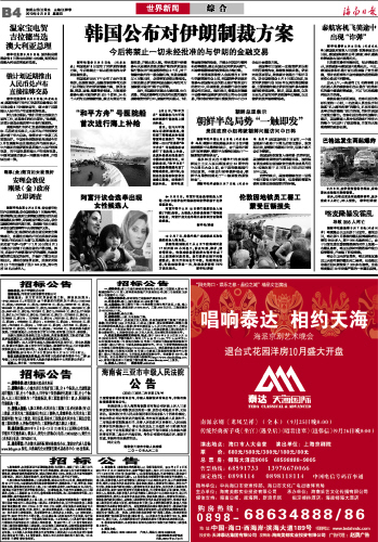 海南日报 世界新闻 012 2010-09-091 2010年09月09日 星期四