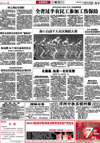 海南日报 本省新闻 003 2010-09-091 2010年09月09日 星期四