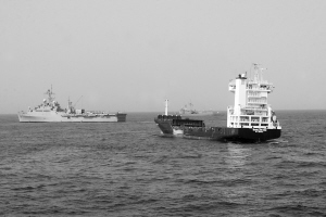 美护航舰解救被劫德国货轮 正在索马里附近海域执行护航任务的美国联合海军舰队,9日在亚丁湾也门东南海域成功解救被索马里海盗劫持的德国“马格兰之星”货轮。新华社发