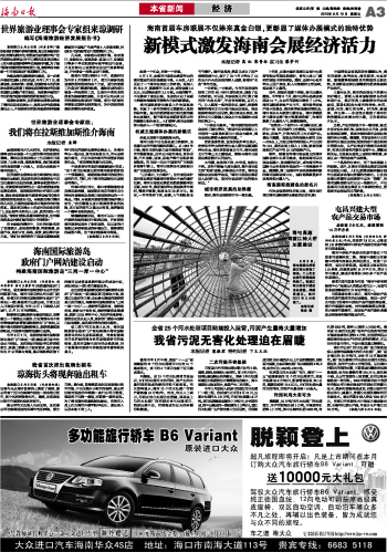 海南日报 本省新闻 003 2010-09-101 2010年09月10日 星期五