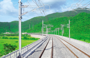 | 9月10日,朝阳下的海南东环铁路电力接触网。 本报记者 古月 摄 |