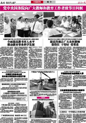 海南日报 中国新闻 综 合 004 2010-09-111 2010年09月11日 星期六