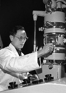 | 彭加木在进行实验。