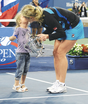 美网一直是克里斯特尔斯喜爱的赛场,她的三座大满贯赛冠军杯均出自美网。此次蝉联让她成为自2001年以来首位连续两年捧杯的女球手,目前她在美网上的连胜纪录已达到21场。而克里斯特尔斯再度折桂,也使得她成为了史上首位能够卫冕成功的妈妈级冠军。