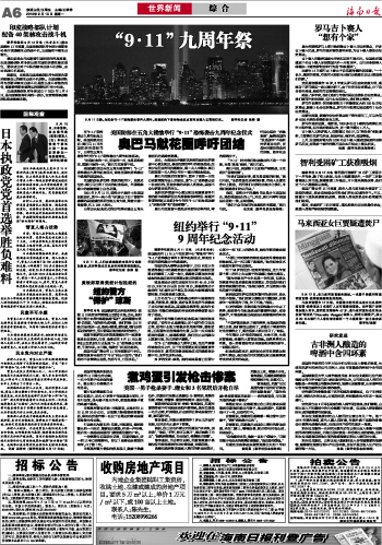 海南日报 世界新闻 006 2010-09-131 2010年09月13日 星期一