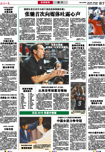 海南日报 体育新闻 015 2010-09-141 2010年09月14日 星期二