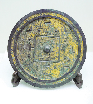 9月14日,“明月飞下妆台来———湖南省博物馆馆藏历代铜镜展”在长沙开展,展出70余面铜镜。图为展出的东汉鎏金四神博局纹铜镜。 新华社发